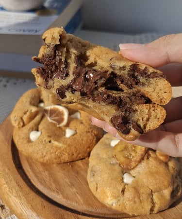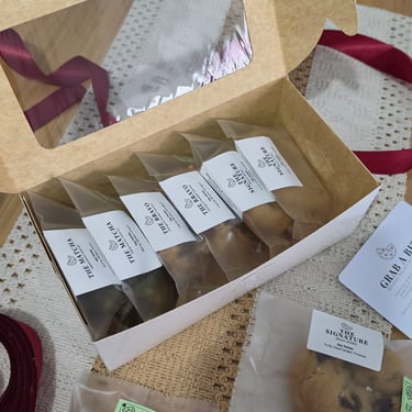 "Our cookies are best enjoyed within 3 days of dispatch. For the signature 'molten' experience, we recommend a quick 10-second reheat."