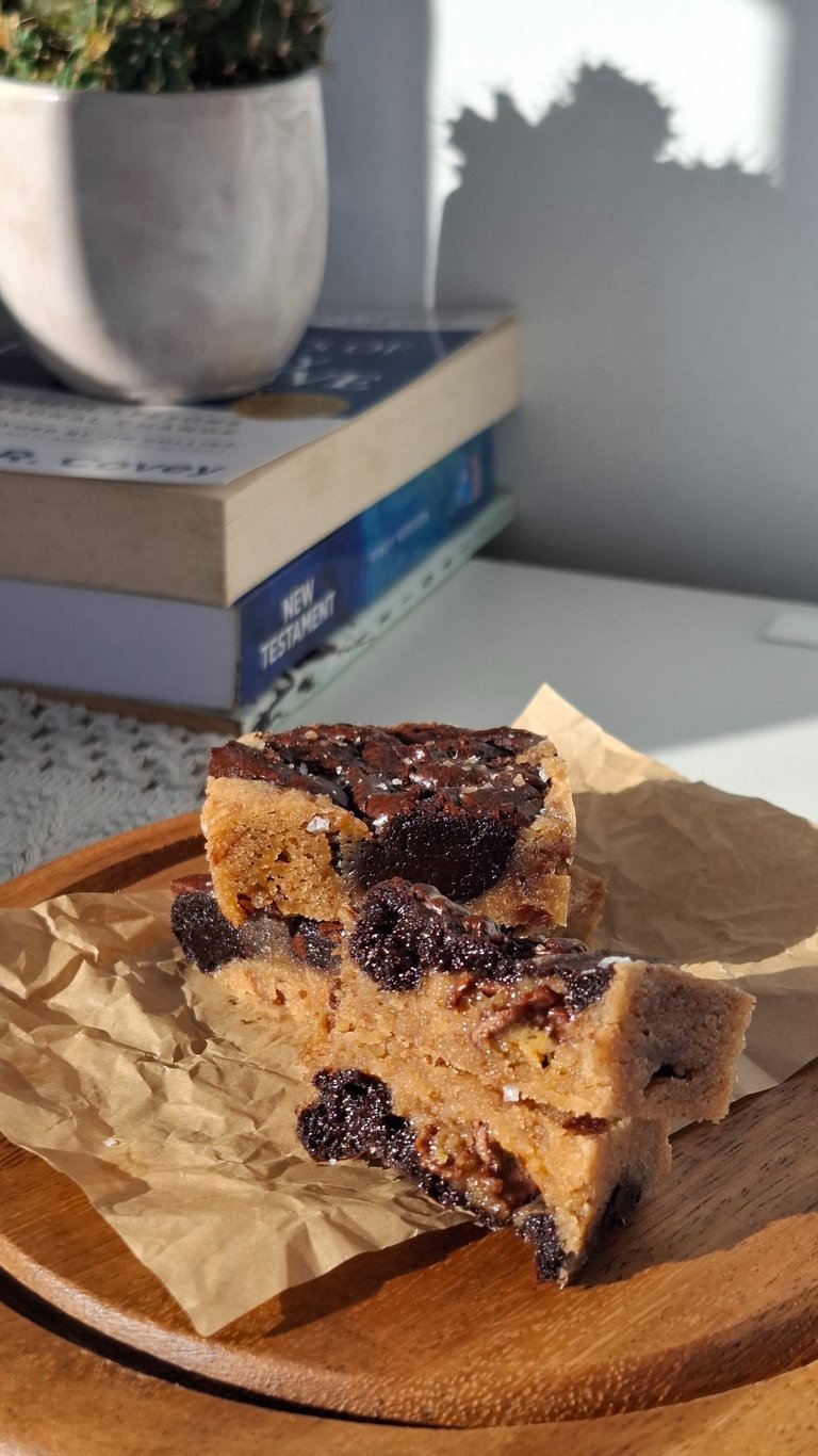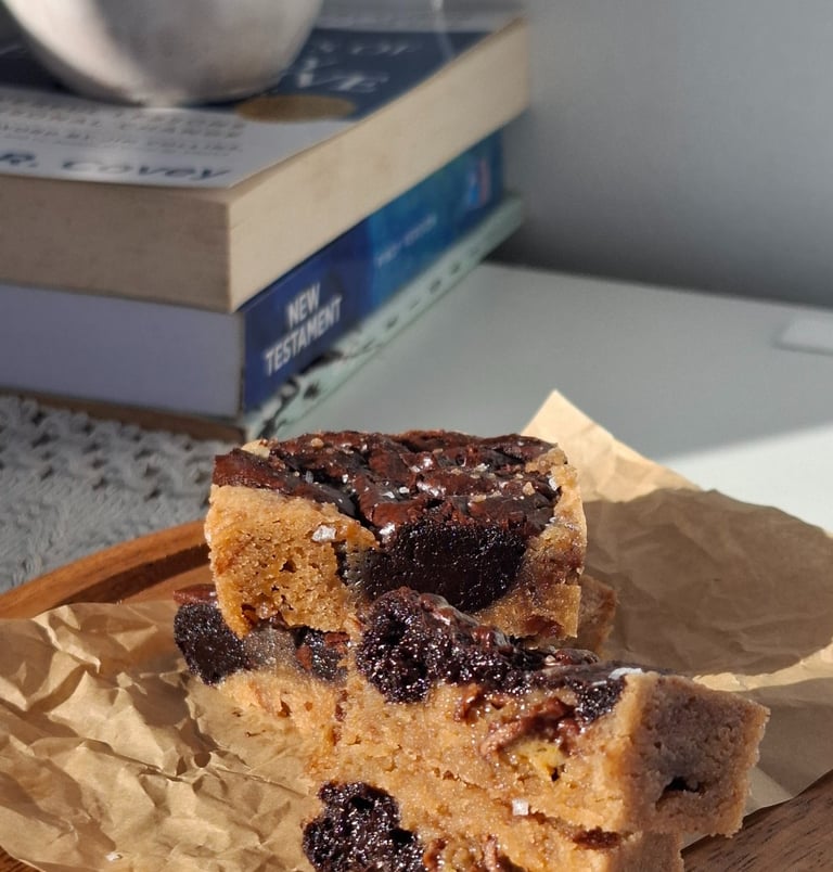A dense, fudgy pull of the brownie meets the chewy, golden crumb of the malted cookie